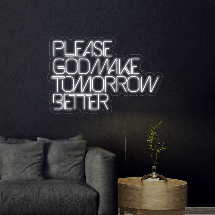 "Please God Make Tomorrow Better" Neon Sign