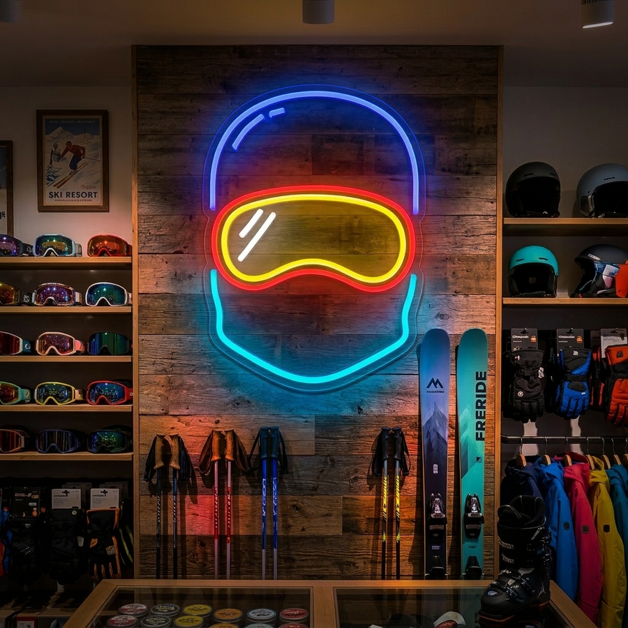 Ski Goggles Neon Sign, Skiing Neon Sign, Snow Ski Wall Sign, Ski Neon Art